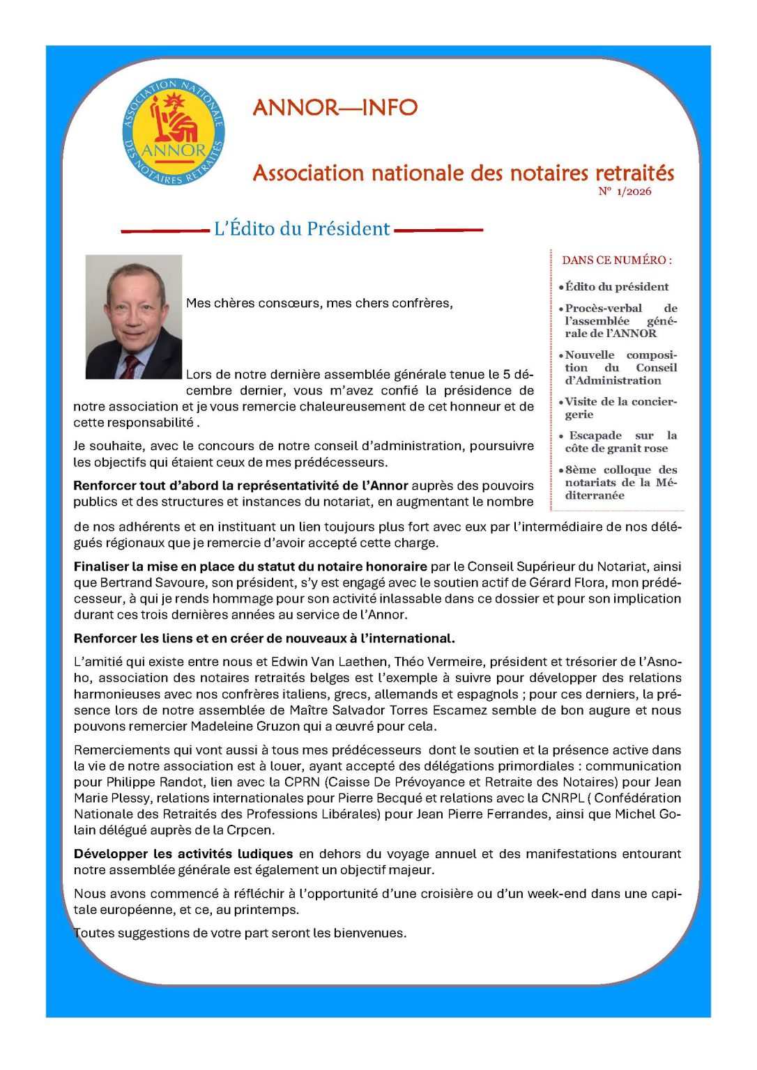 Édito du nouveau président, nouveau Conseil d’administration, procès-verbal de la dernière assemblée générale, compte-rendu des activités… Cette première lettre d’information 2026 vous permet de découvrir toute l’actualité de l’ANNOR, partenaire de la CPRN.